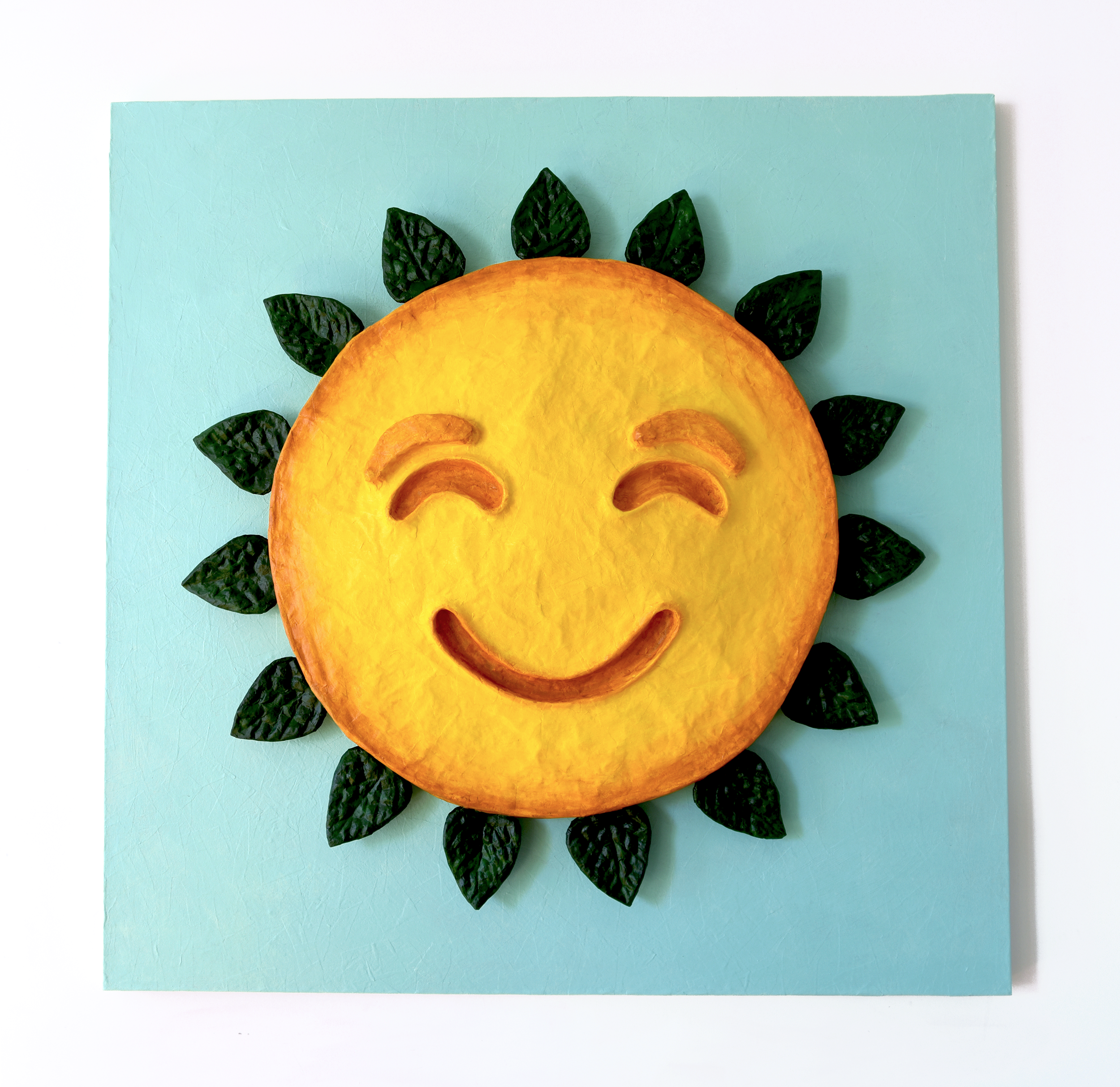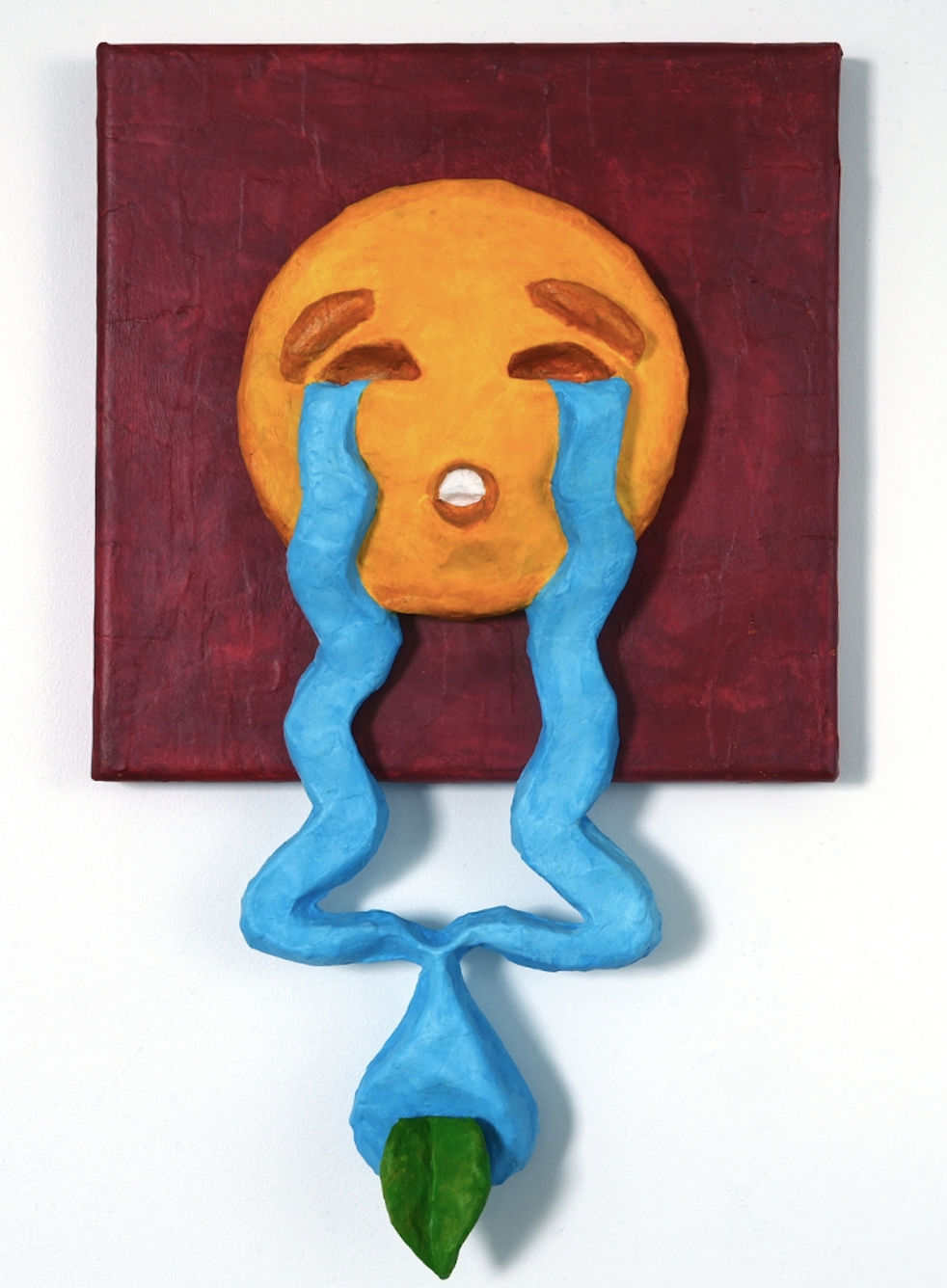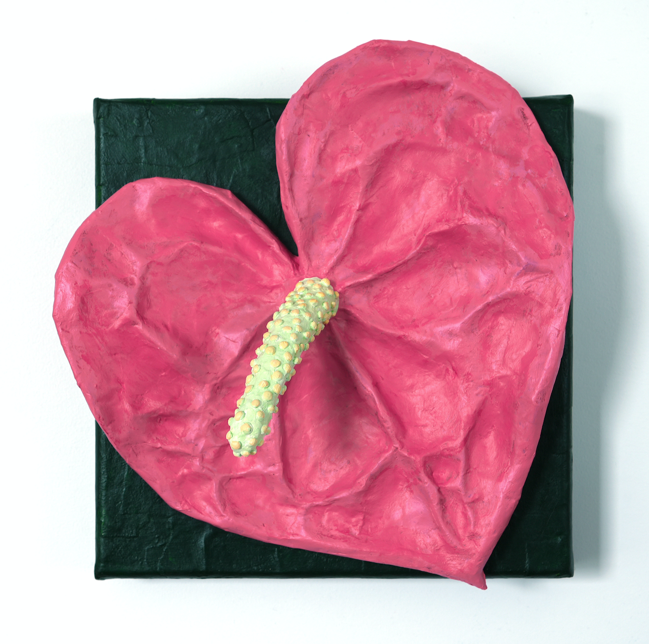 Vivid Botanica explores the tension between nature and technology, reflecting on the desire to reconnect with the living world while integrating modern forms of communication. Using papier-mâché and acrylic on canvas, this series examines the visceral beauty of organic forms while using the emoji language of the digital age.